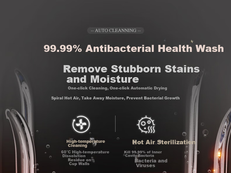 **Automatic Cleaning:** 99.99% sterilization, automatic drying, prevention of bacterial growth