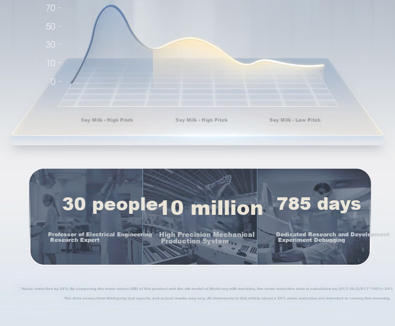 **Motor Response:** Intelligent tracking of ingredient granularity and hardness, stable motor operation, noise reduction by 47%