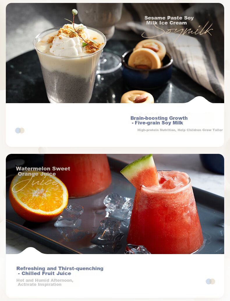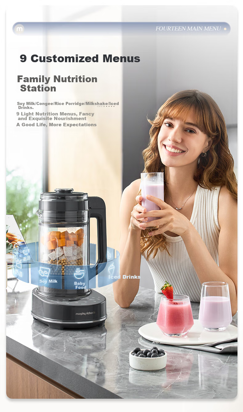 **Customization:** 9 preset menus for soy milk, congee, porridge, smoothies, ice drinks, etc.