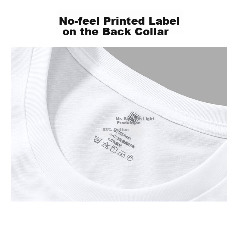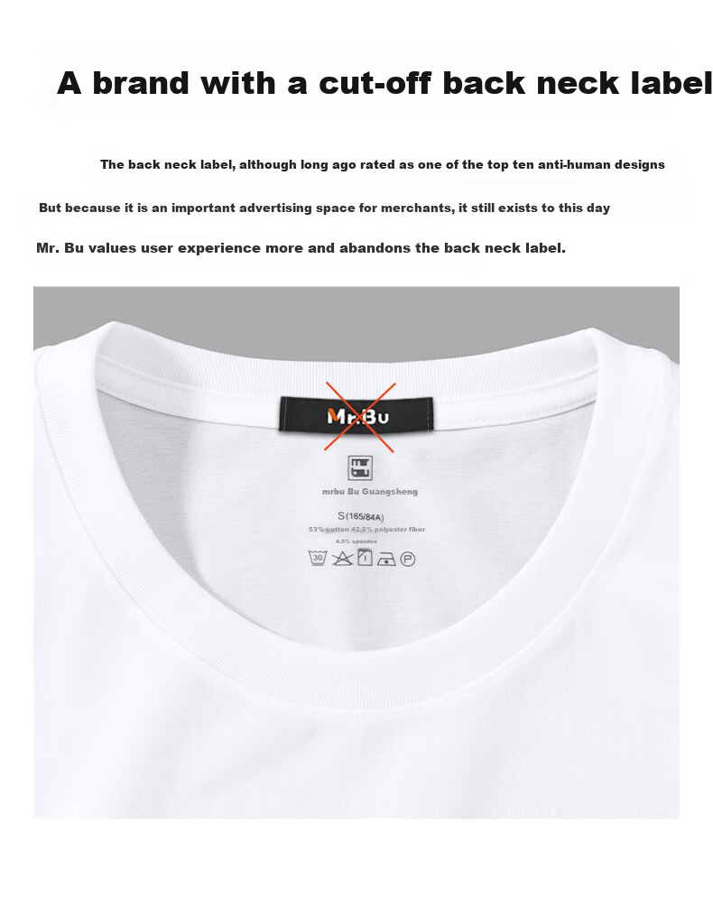 **Labeling:** Features a seamless tag on the back collar with the brand name MrBu and fabric composition details for a comfortable wear experience.