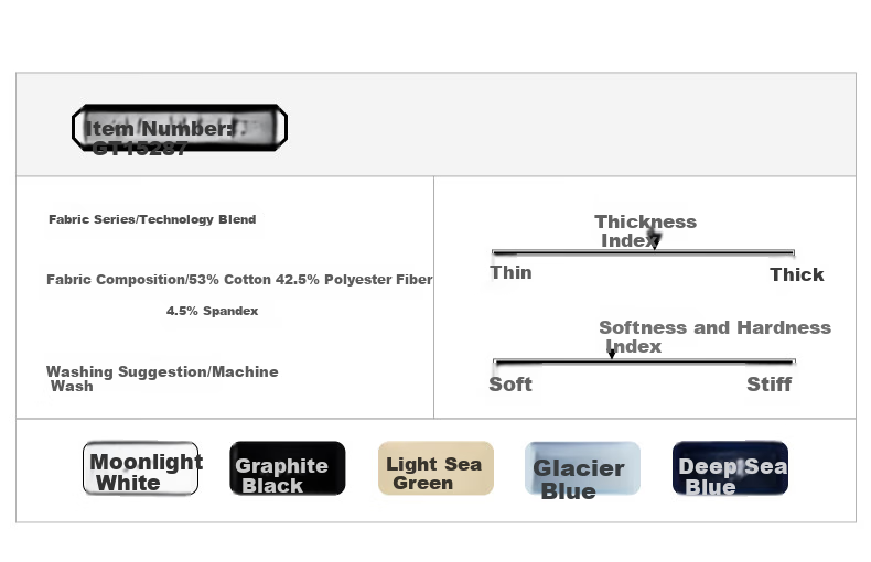 **Fabric Composition:** 53% cotton, 42.5% polyester fiber, 4.5% spandex