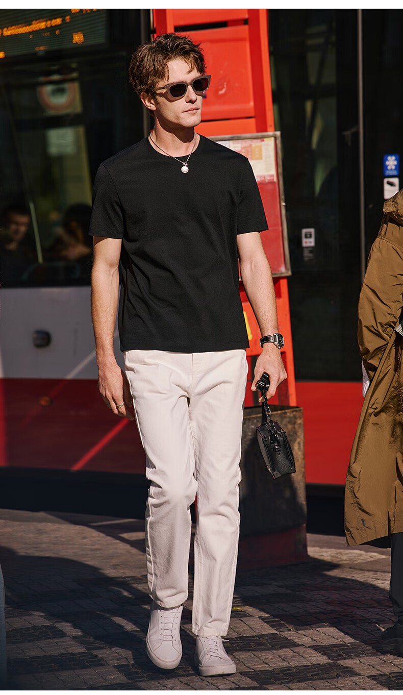 **Fabric Technology:** The Commuter T utilizes a special weaving structure that instantly absorbs moisture on the inner layer to keep dry and quickly evaporates sweat on the outer layer, ensuring one-way moisture guidance and fast drying. The fabric disperses heat and moisture efficiently, with the inner layer rapidly absorbing sweat and transferring it to the outer layer without seepage. The addition of 42.5% cooling fibers and 4.5% elastic silk on top of the base of long-staple cotton from Xinjiang provides a cooling sensation, wrinkle resistance, and elasticity for enhanced comfort and easy care.