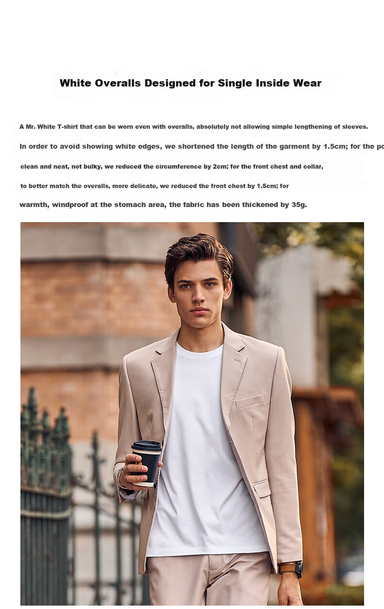 **Description:** GoodT-Shirt by MrBu is designed for layering under jackets. It is tailored to avoid white edges, with shortened length, reduced waist circumference, and smaller chest for better pairing with jackets. The fabric is 35g thicker for warmth and comfort in autumn and winter.