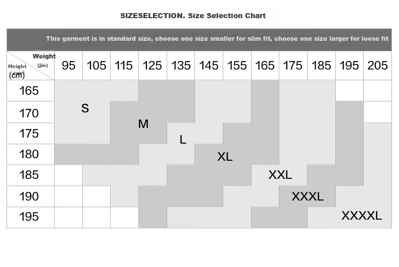**Size Selection:** 95-XXXXL (in weight) / 165-195 cm (in height)