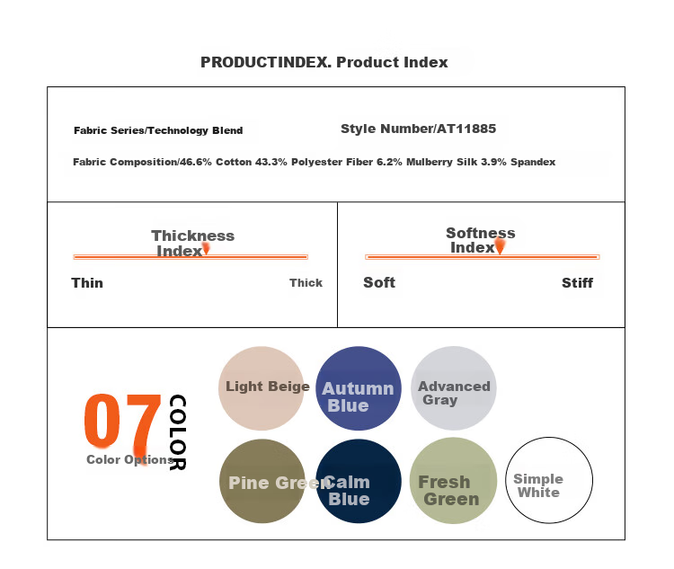 **Fabric Composition:** 46.6% cotton, 43.3% polyester, 6.2% mulberry silk, 3.9% spandex