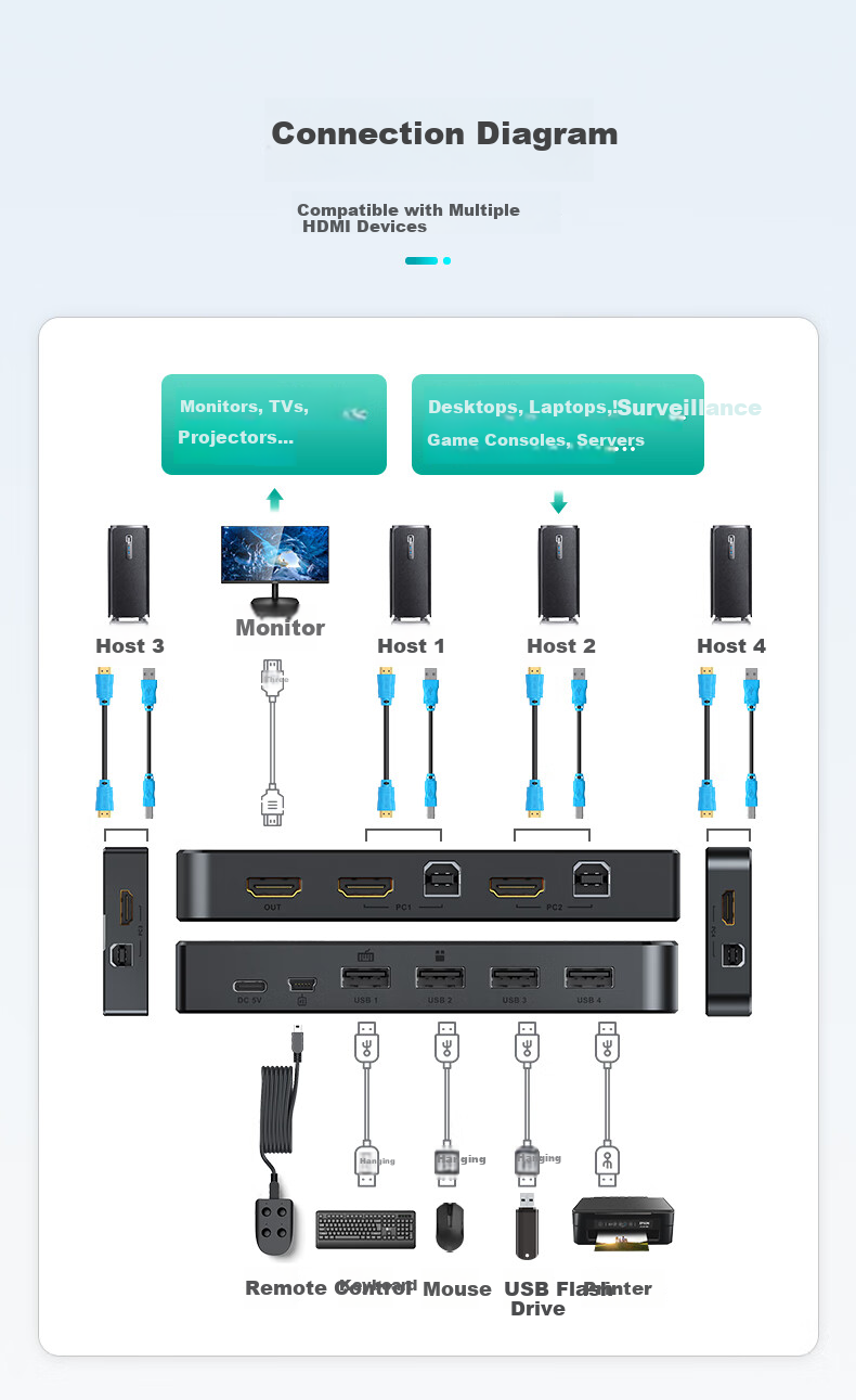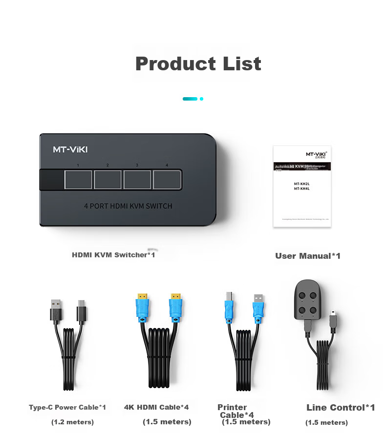 - Comes with 4 HDMI cables and 4 USB-B cables for stable transmission