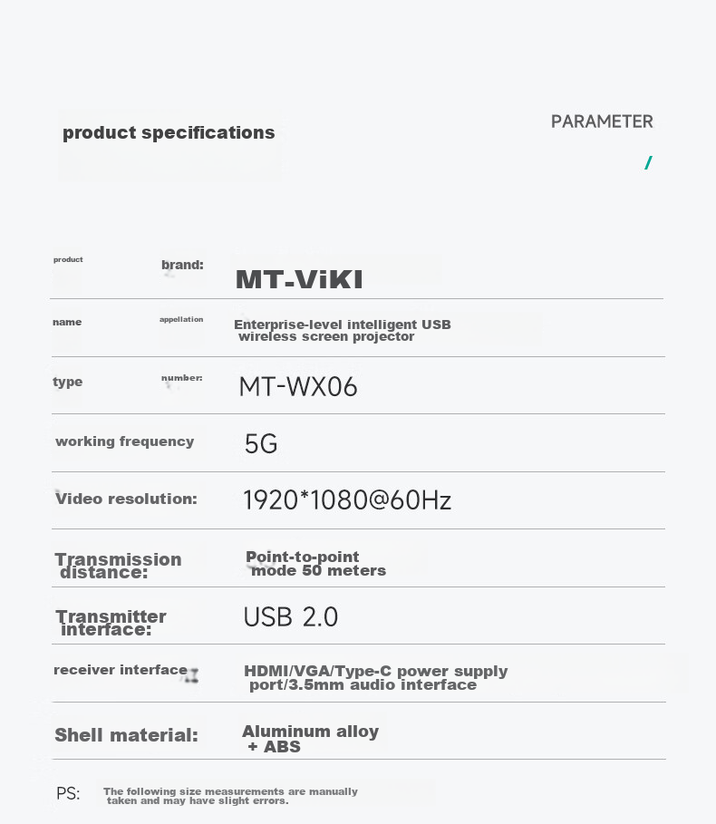 **Receiver Interface:** HDMI/VGA/Type-C power supply port/3.5mm audio interface