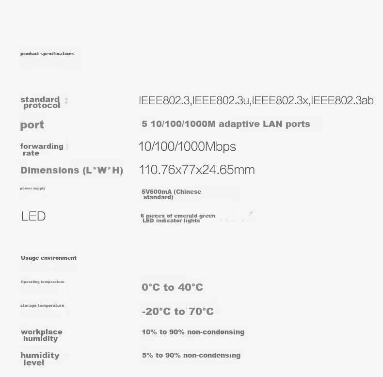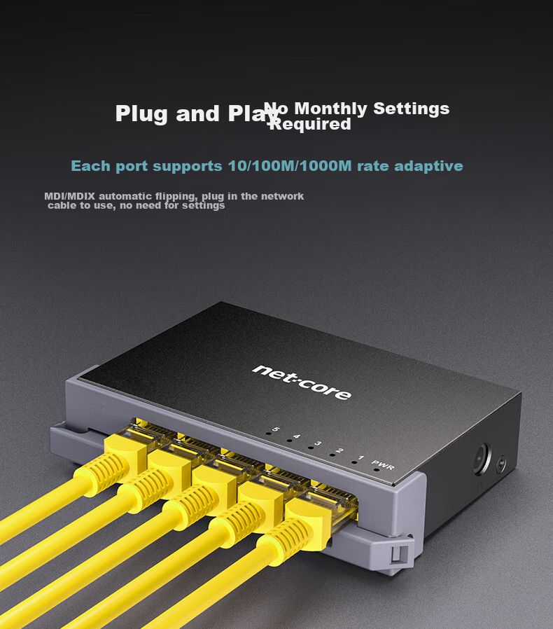 - **Ports:** 5 x 10/100/1000M adaptive LAN ports
