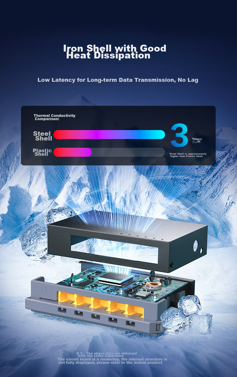 - Robust iron shell for excellent heat dissipation and low latency data transmission