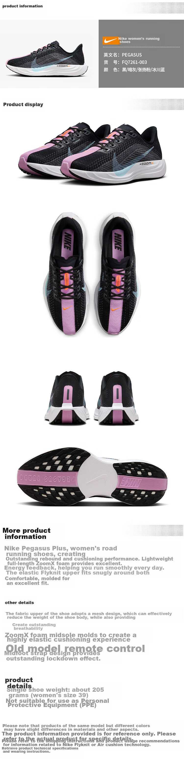 - Single shoe weight: approximately 205 grams (Women's size 39)
