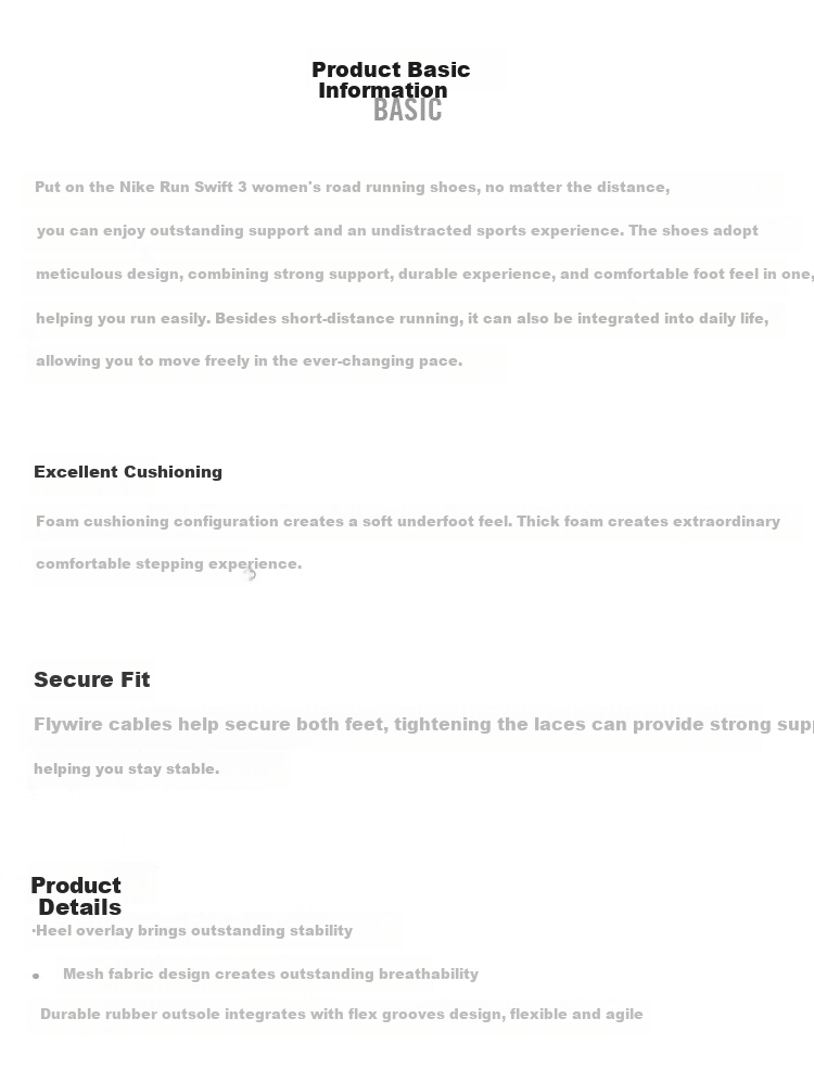 Description: Experience exceptional support and a distraction-free running experience with the Nike Run Swift 3 women's road running shoes. These shoes are designed with a focus on providing strong support, durability, and comfortable foot feel, making your runs effortless. They can also seamlessly transition into your daily life, allowing you to move freely in a constantly changing pace.