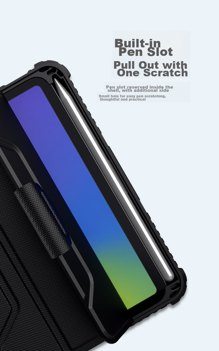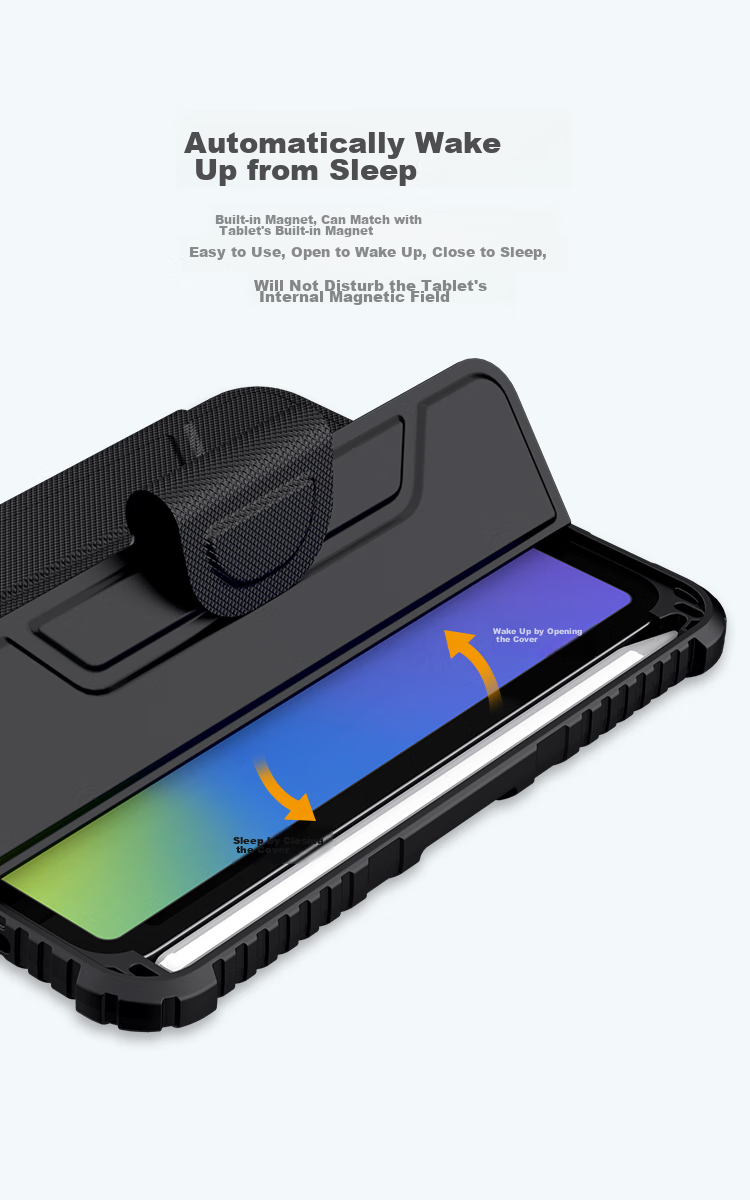 **Features:** Automatic wake-up/sleep function with built-in magnet, magnetic closure strap for secure closure, built-in stylus slot for easy access, precise cutouts for comfortable device operation