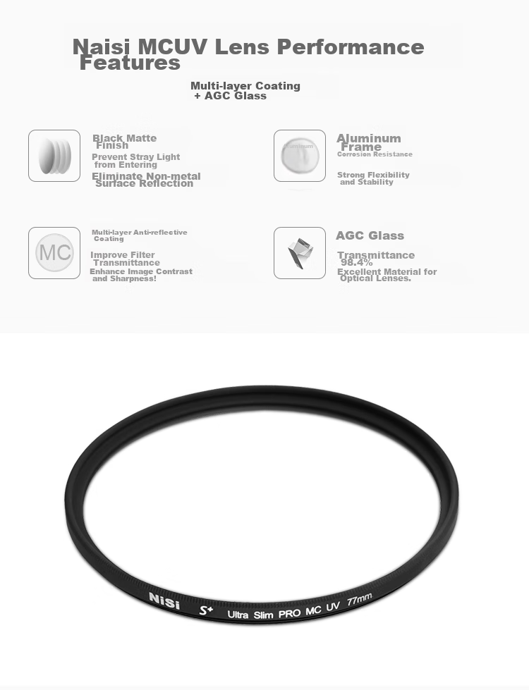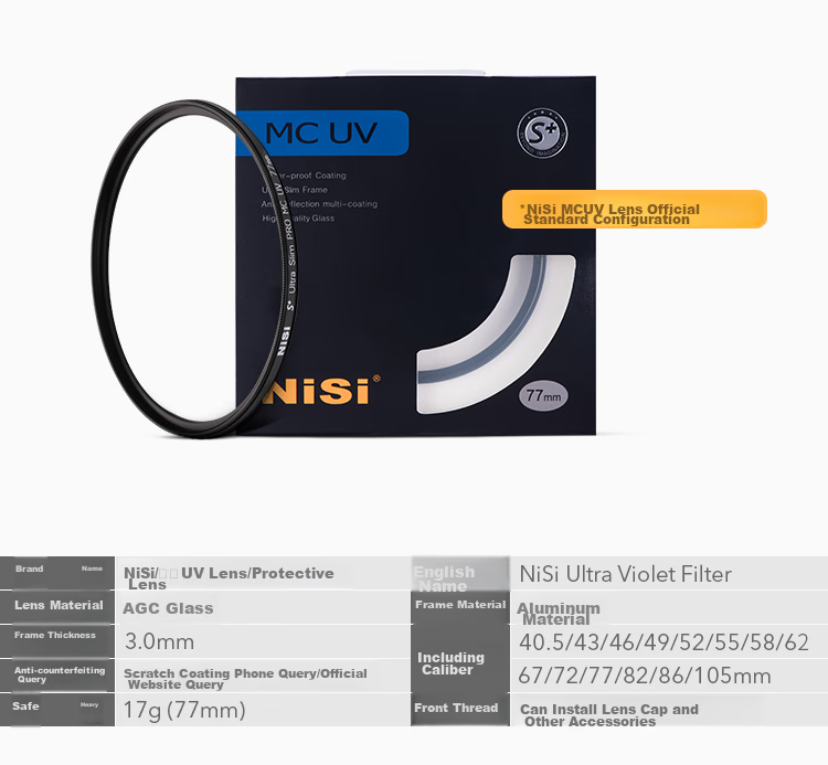 *Note: The specifications provided are based on the information provided for NiSi UV and MCUV filters.*