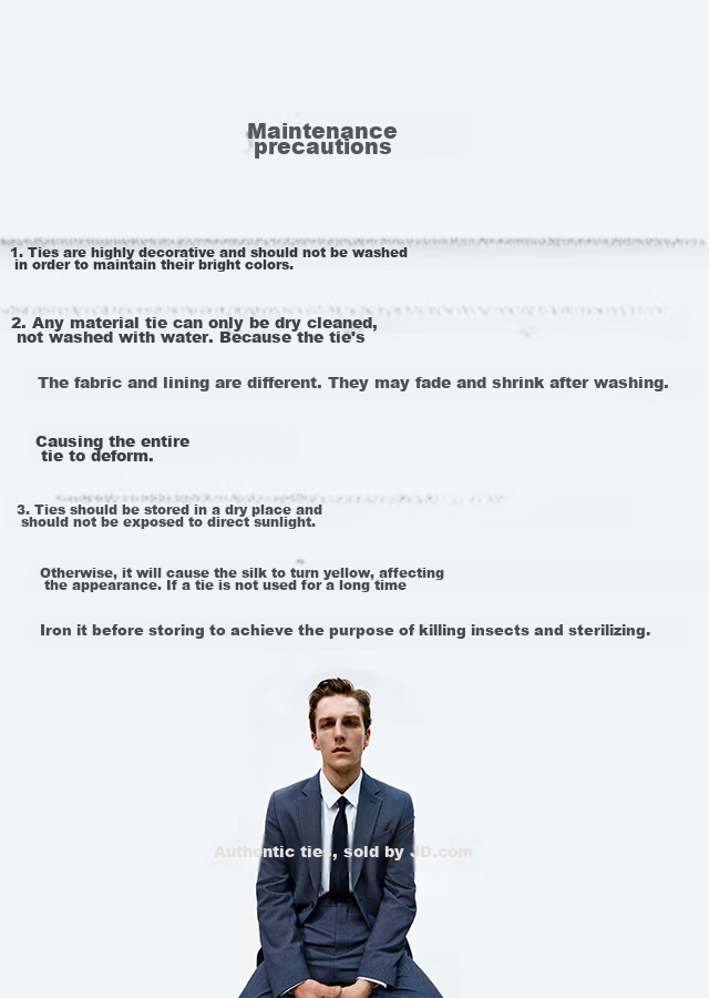 3. Store the tie in a dry place away from direct sunlight to prevent yellowing of the silk material. Before long-term storage, iron the tie to eliminate any pests and bacteria.