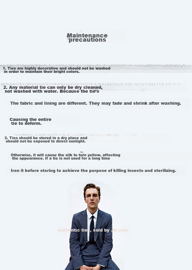 3. Store the tie in a dry place away from direct sunlight to prevent yellowing of silk and maintain its appearance. Iron the tie before long-term storage for insect prevention.