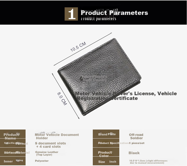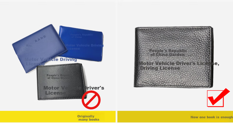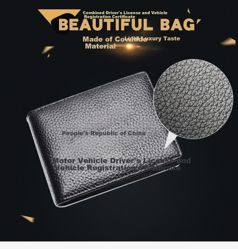 **Note:** The product is a combination of a driving license and vehicle registration certificate holder, made of cowhide leather with a touch of luxury, suitable for use in the People's Republic of China.