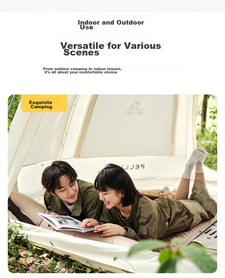 - The mattress should be set up at the campsite upon arrival, with the valve fully open for pre-inflation. The mattress can automatically inflate up to 80%, and manual inflation is required to adjust the pressure for desired comfort.