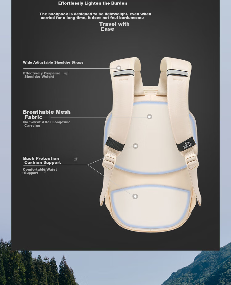 Comfort: Wide adjustable shoulder straps, Breathable mesh back padding, Comfortable waist support