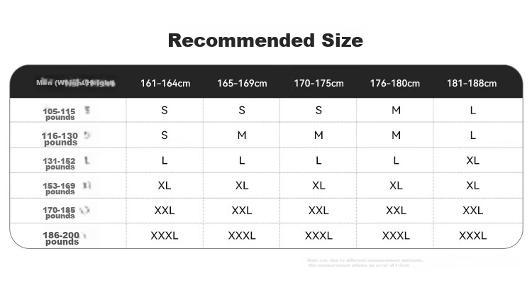 **Recommended Size:** Based on weight and height for optimal fit