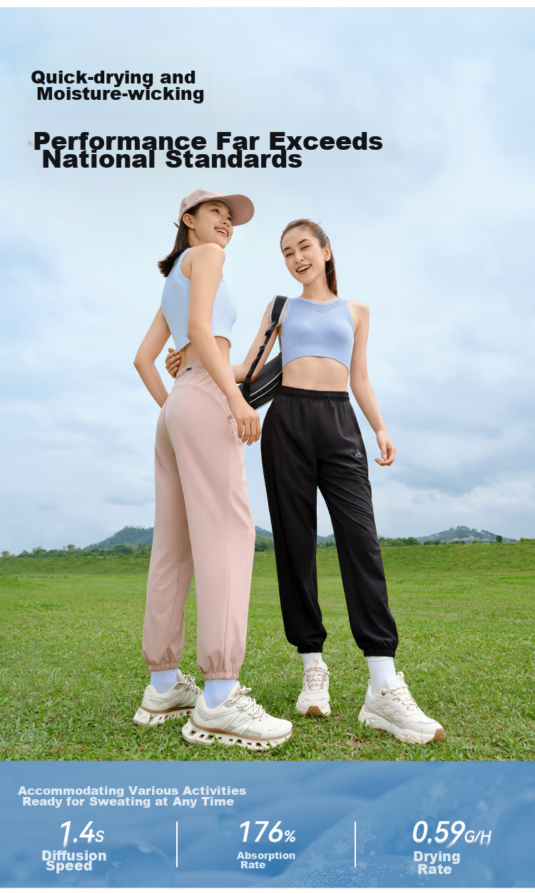 **Description:** Breathable and quick-drying high elasticity casual sports pants, featuring a lightweight cloud-like feel that remains comfortable for extended wear. Designed for outdoor activities, incorporating advanced technologies such as WING CICADA for ultra-lightweight feel, STORM and QiCEOXY for breathability, and STORM.DRY for quick-drying properties. The pants are also equipped with STRETCA four-way stretch technology for enhanced flexibility.