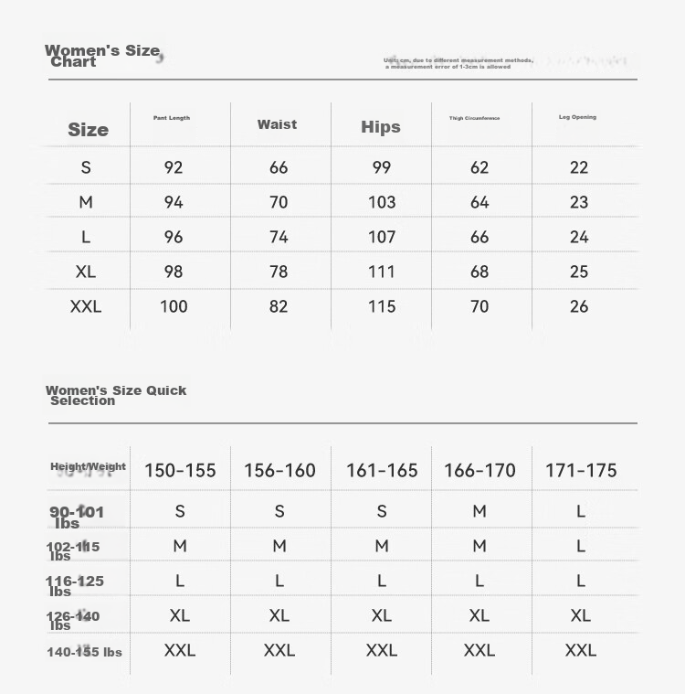 - XL: Waist 82cm, Hip 110cm, Thigh 68cm, Length 100cm