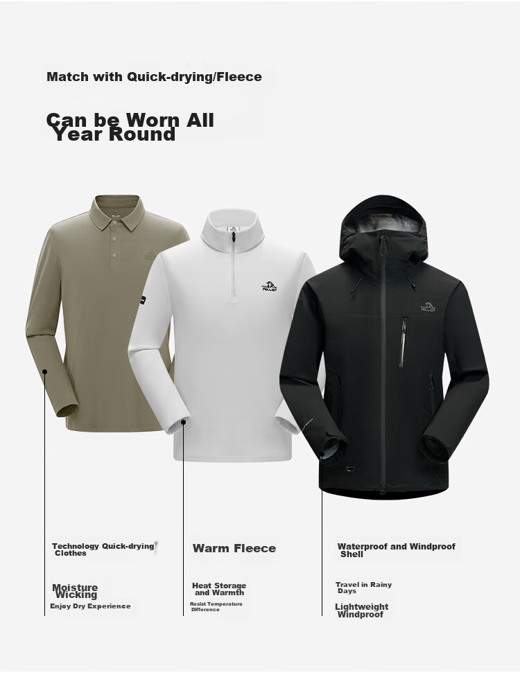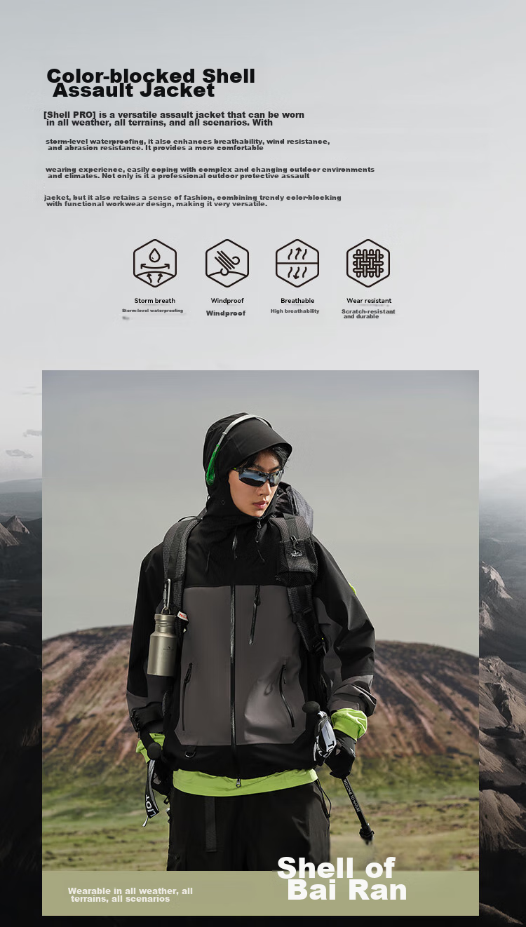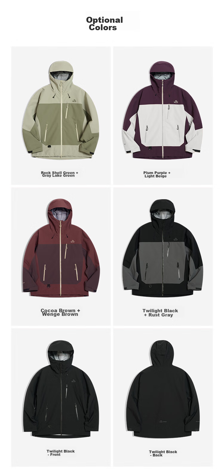 **Description:** The Mountain Shell PRO is an all-weather, all-terrain, all-scenario versatile hardshell jacket. It features storm-level waterproofing while enhancing breathability, windproofing, and abrasion resistance. It provides a comfortable wearing experience and can easily handle complex outdoor environments and climates. Combining functionality with fashion, it is a versatile and stylish choice for outdoor protection.