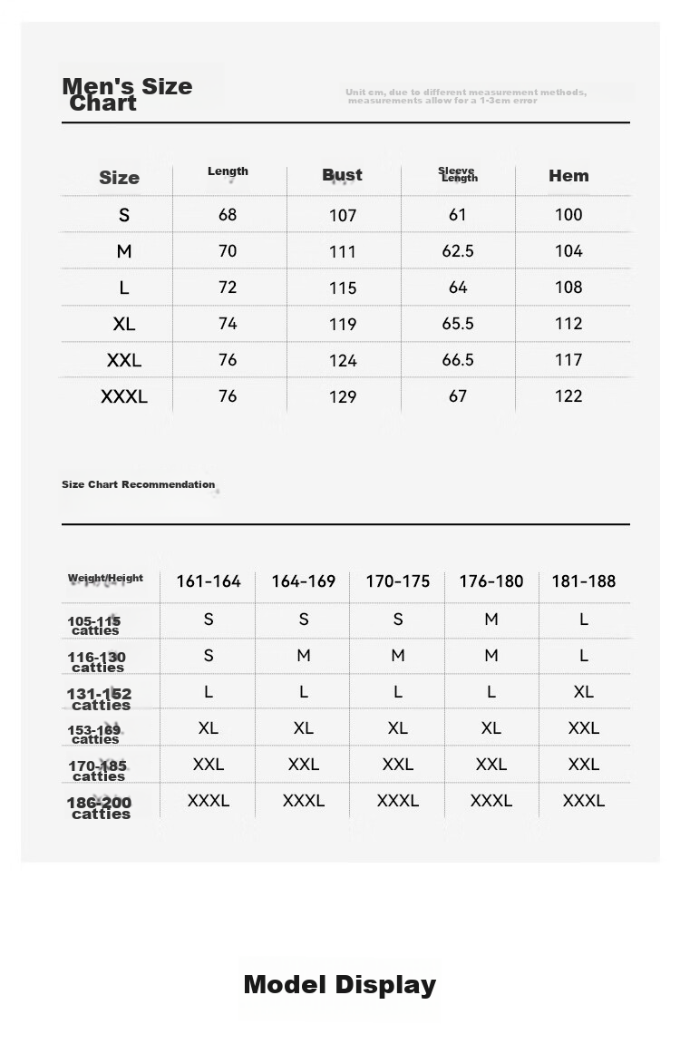 - Men's: S-7XL (Refer to size chart for measurements)