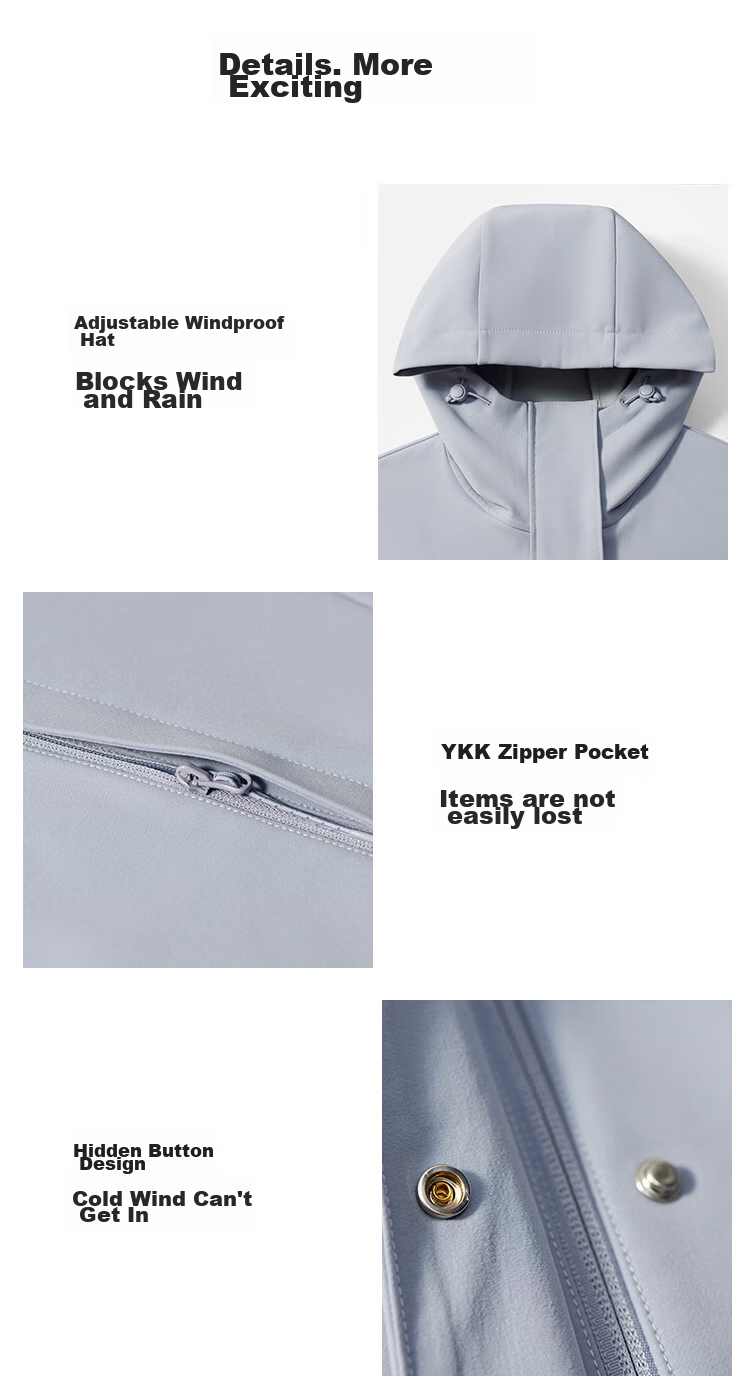 - Adjustable windproof hood and cuffs