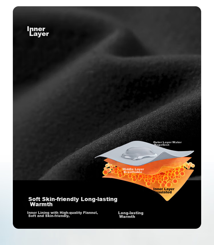 - Inner Layer: Thin fleece lining for constant warmth and comfort