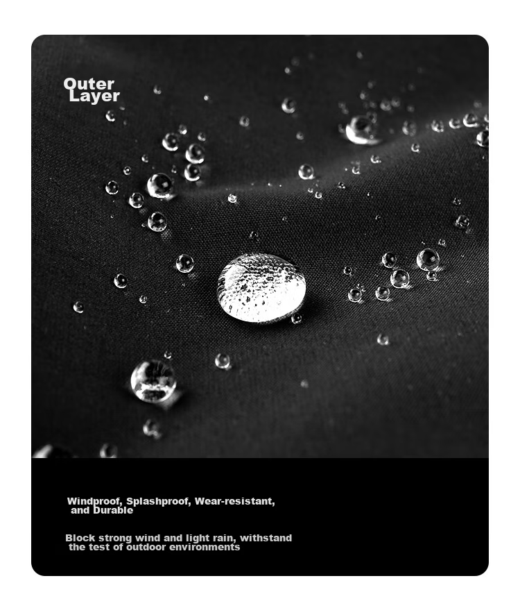 - Outer Layer: Windproof and water repellent