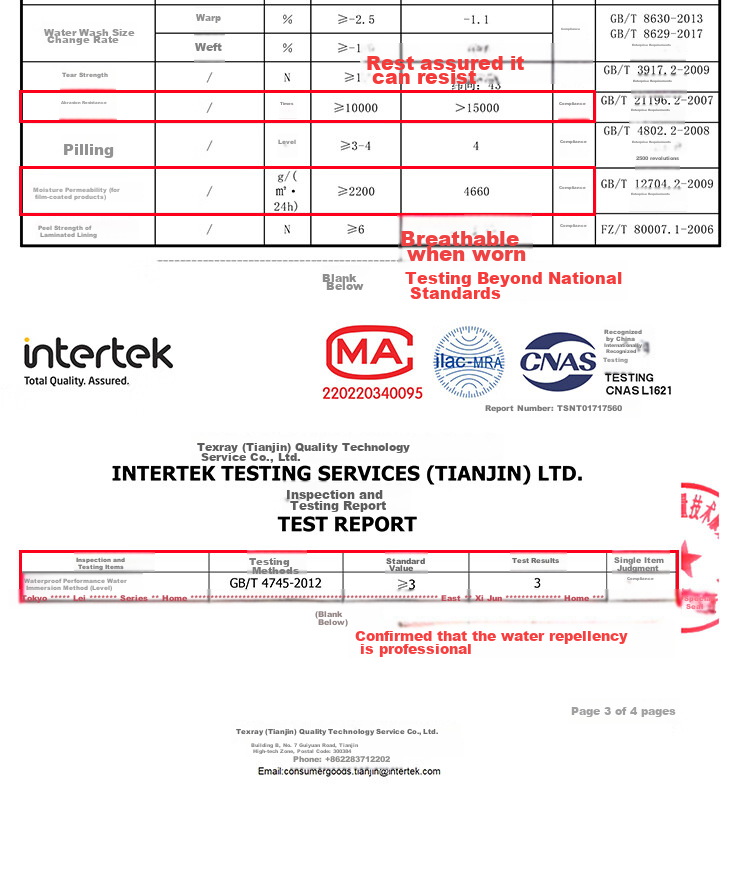 - Meets national quality standards for waterproofing, breathability, and durability