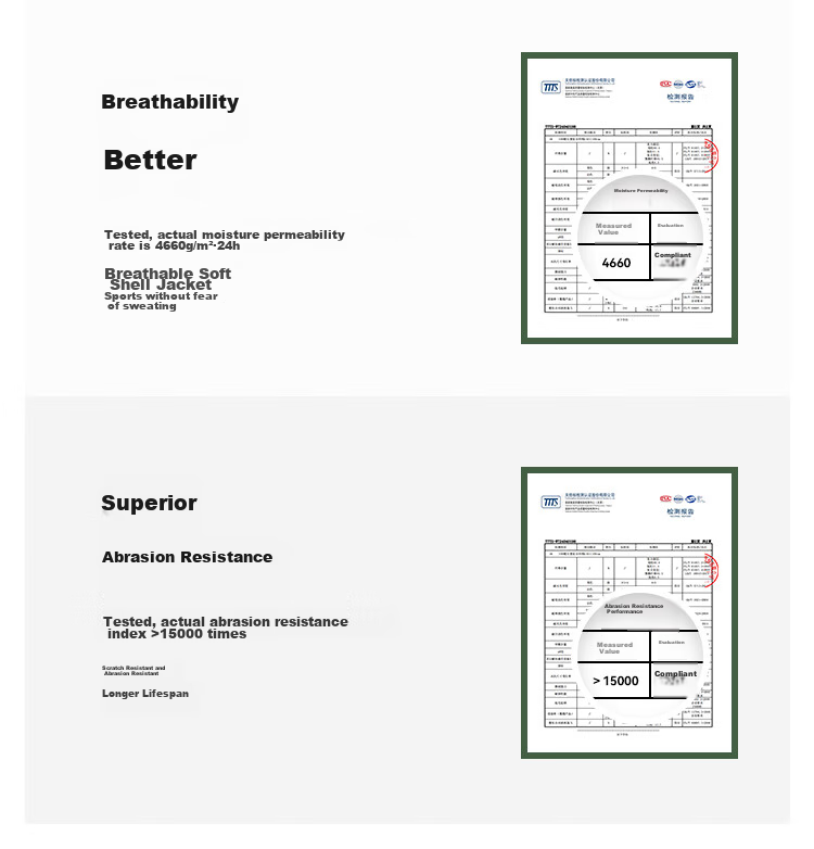 - Breathability rating of 4660g/m²·24h