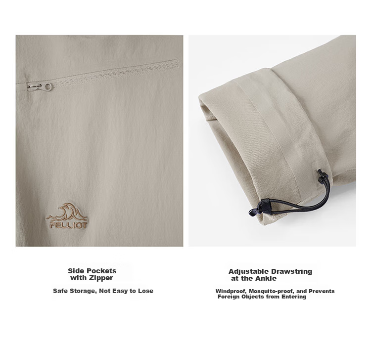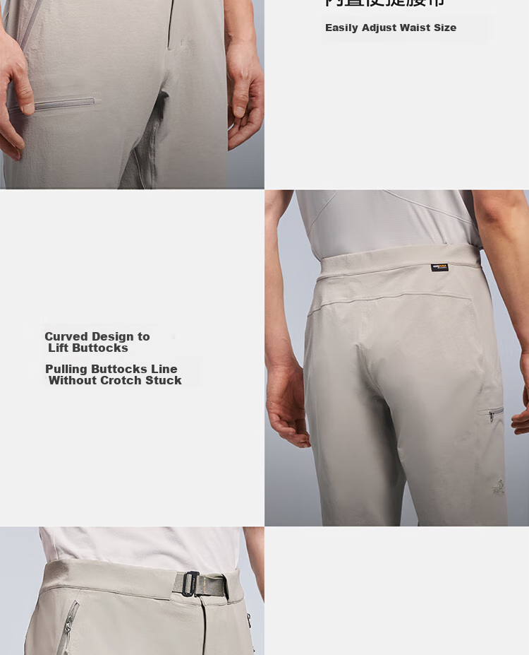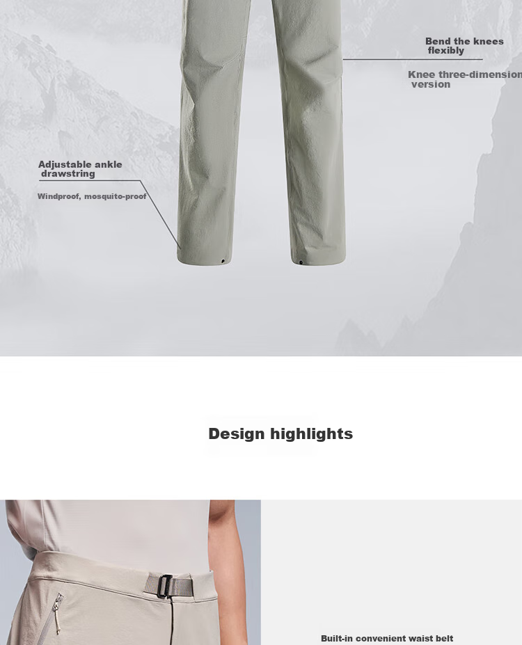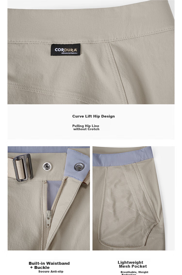 **Detail:** Diamond crotch design, curve-enhancing hip design, built-in waist belt, lightweight mesh pockets, windproof and insect-proof