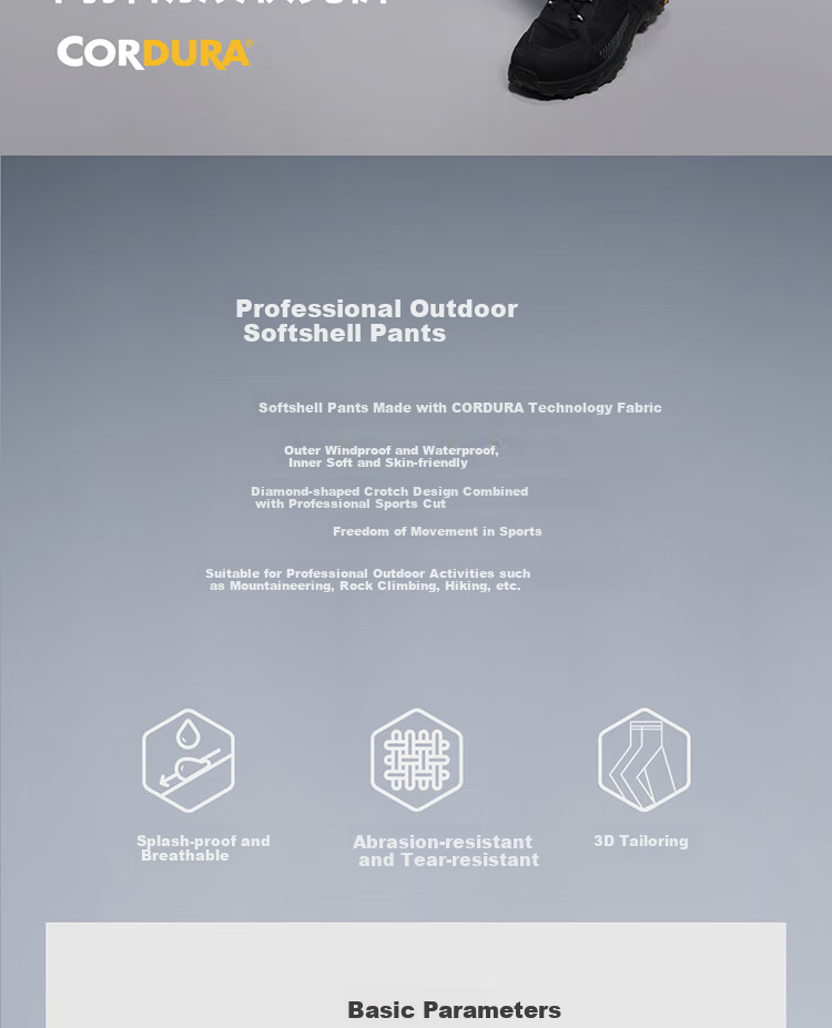 This Windshield series of soft shell pants by Pelliot is designed for outdoor enthusiasts seeking comfort, durability, and protection in various activities such as mountaineering, rock climbing, and hiking.