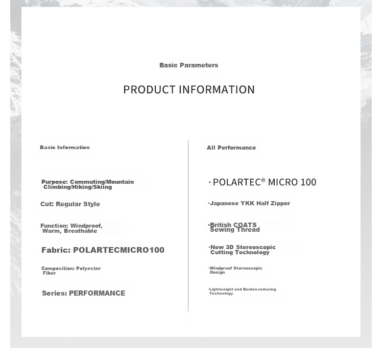 **Note:** The above product specifications are based on the Pelliot PERFORMANCE series featuring the POLARTEC 100 SERIES technology, designed for outdoor enthusiasts seeking reliable and high-performance gear for various outdoor activities.