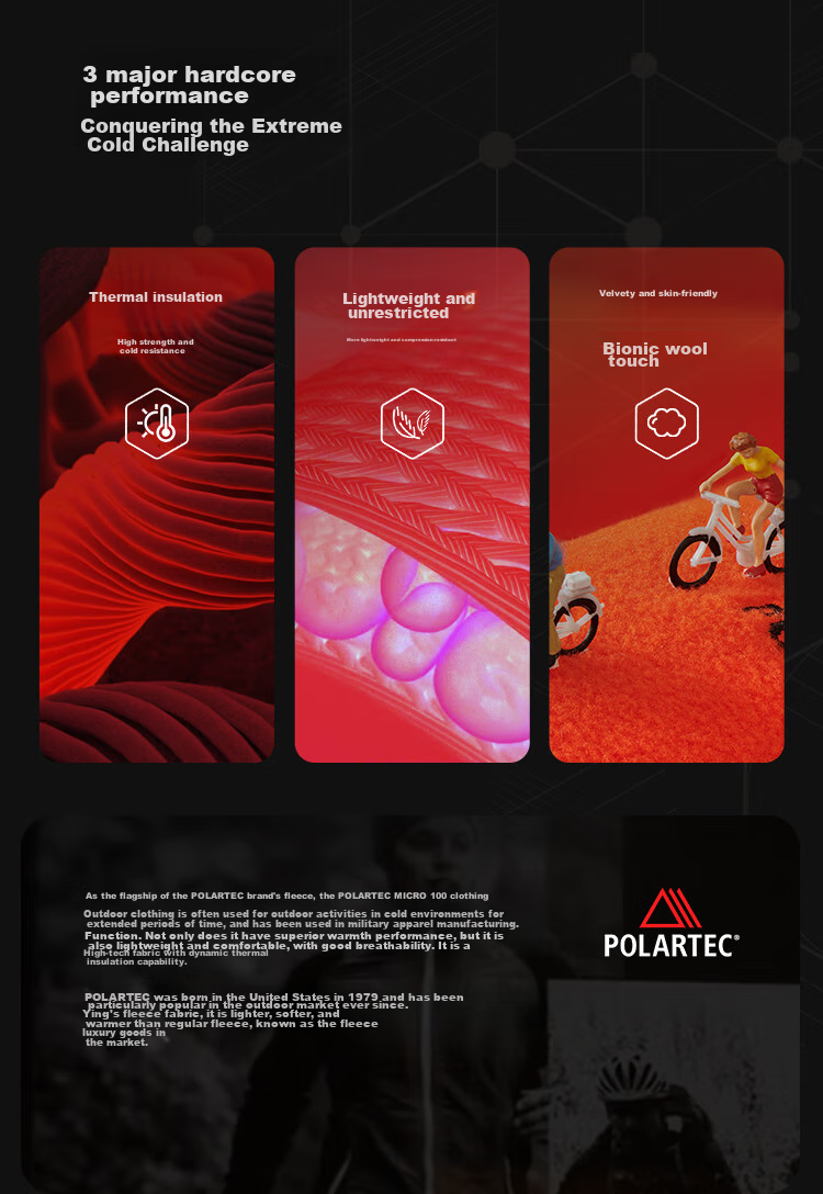 - Utilizes POLARTEC MICRO100 technology for superior warmth and defense against cold weather