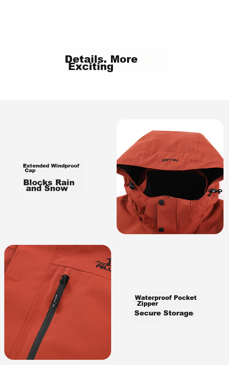 - Adjustable hood with snow and rain protection