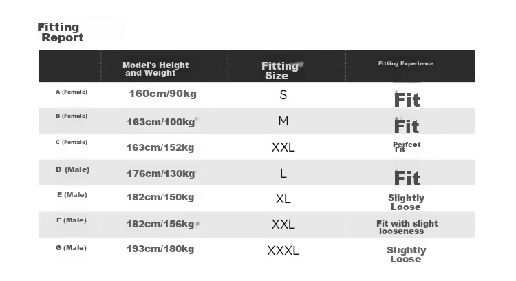 - Men's: S, M, L, XL, 7XX, XXXL