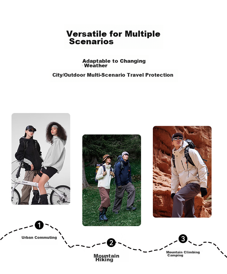 - Adjustable cuffs for wind protection