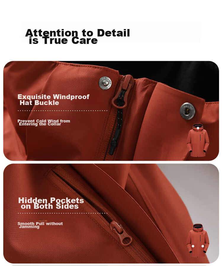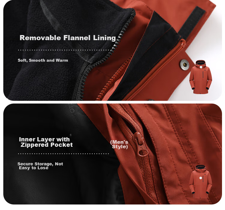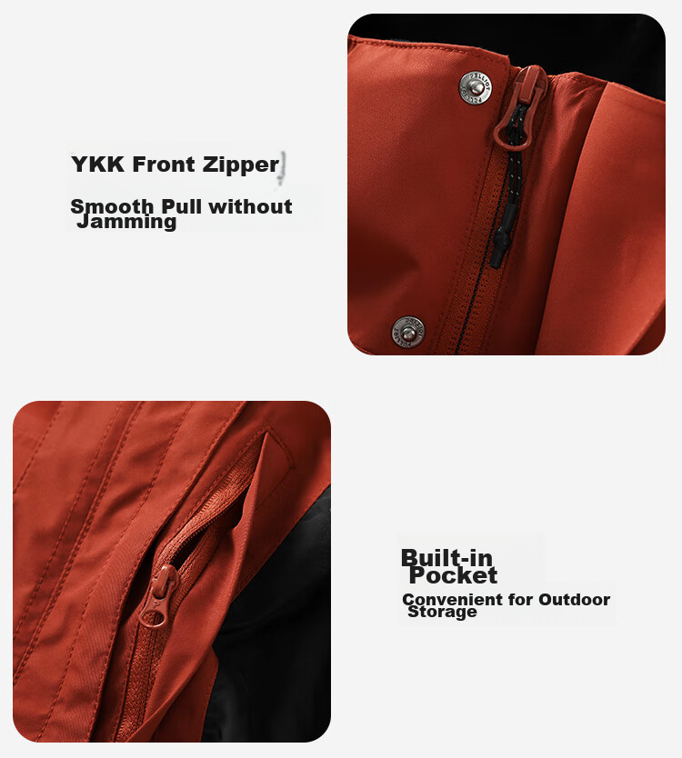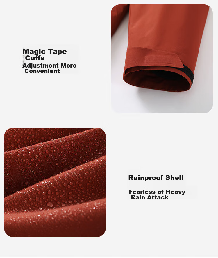 - Waterproof zippers and sealed seams