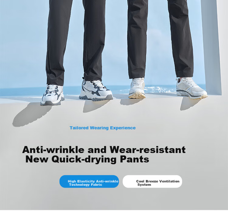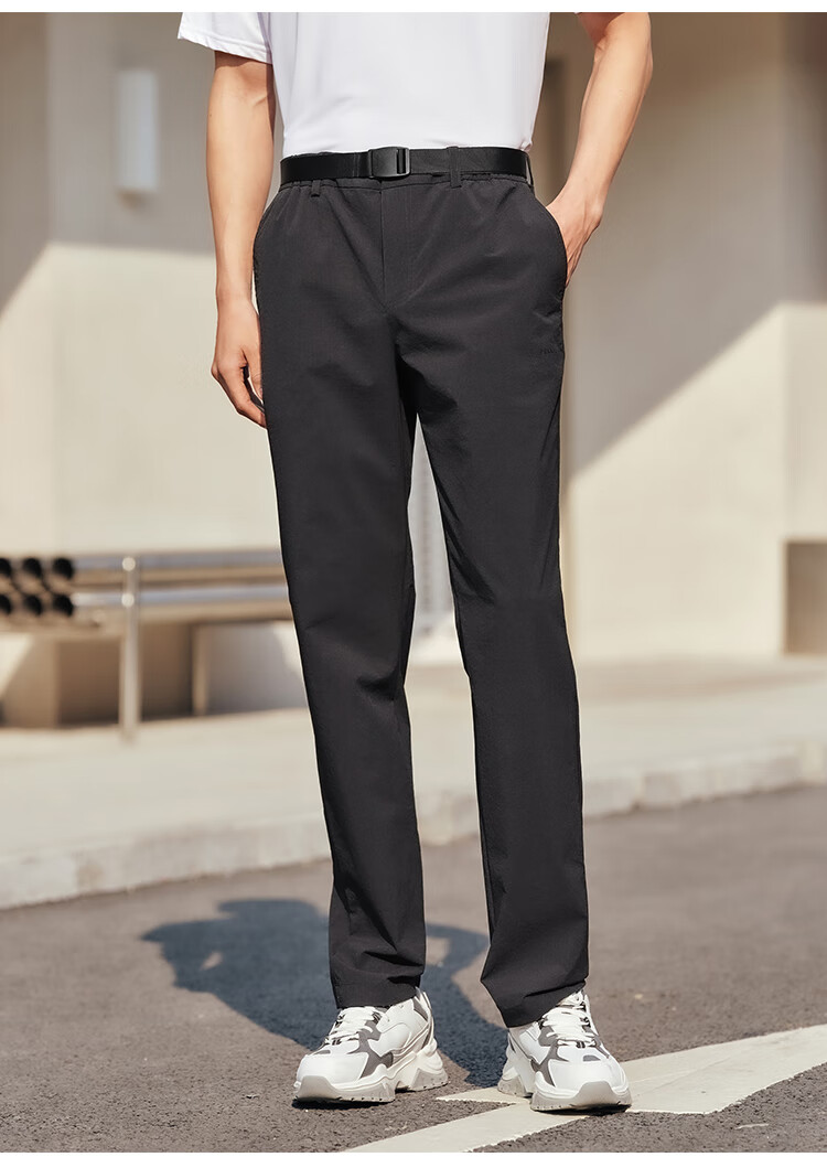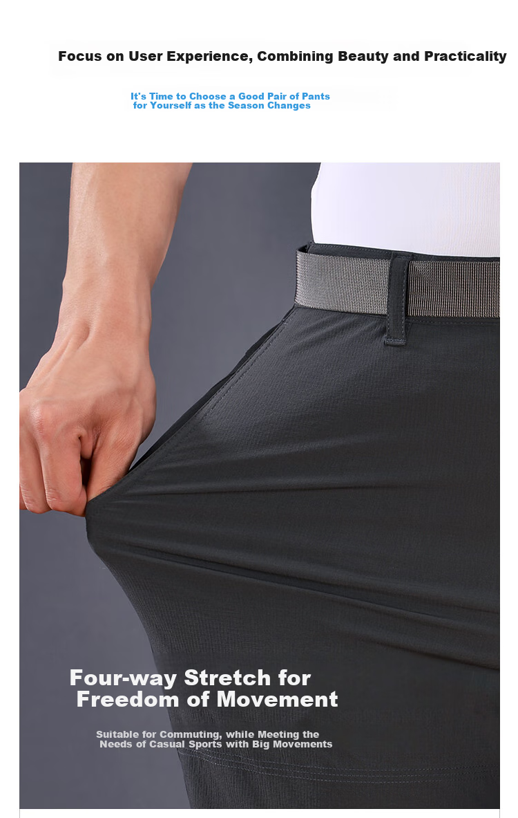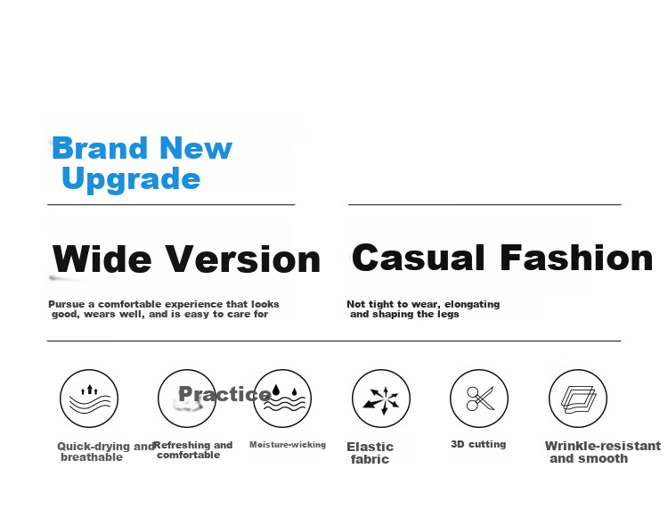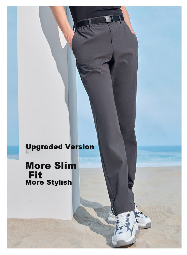 **Description:** Custom-fit wearing experience, wrinkle-resistant and durable quick-drying pants with high elasticity and anti-wrinkle technology fabric, cool and breathable ventilation system. Upgraded version with a wide and casual style, focusing on a comfortable experience that is good-looking, easy to wear, and easy to care for. The fit is not tight, elongating and shaping the legs, quick-drying and breathable, refreshing and comfortable, moisture-wicking, elastic fabric, 3D cutting, anti-wrinkle and smooth. The upgraded version is more slim-fitting and stylish. Emphasizes both user experience and practicality, suitable for commuting and casual sports activities. Breathable and dry, high elasticity and anti-wrinkle, quickly absorbs sweat from exercise, four-way stretch for freedom of movement. Comfortable and highly elastic, made of nylon fabric with a lightweight and high elasticity, providing a comfortable wear, heat dissipation without stickiness, breathable micro-porous structure for air circulation, shaping in 3D, selected double-thread elastic fabric, not easily deformed, slimming fit.