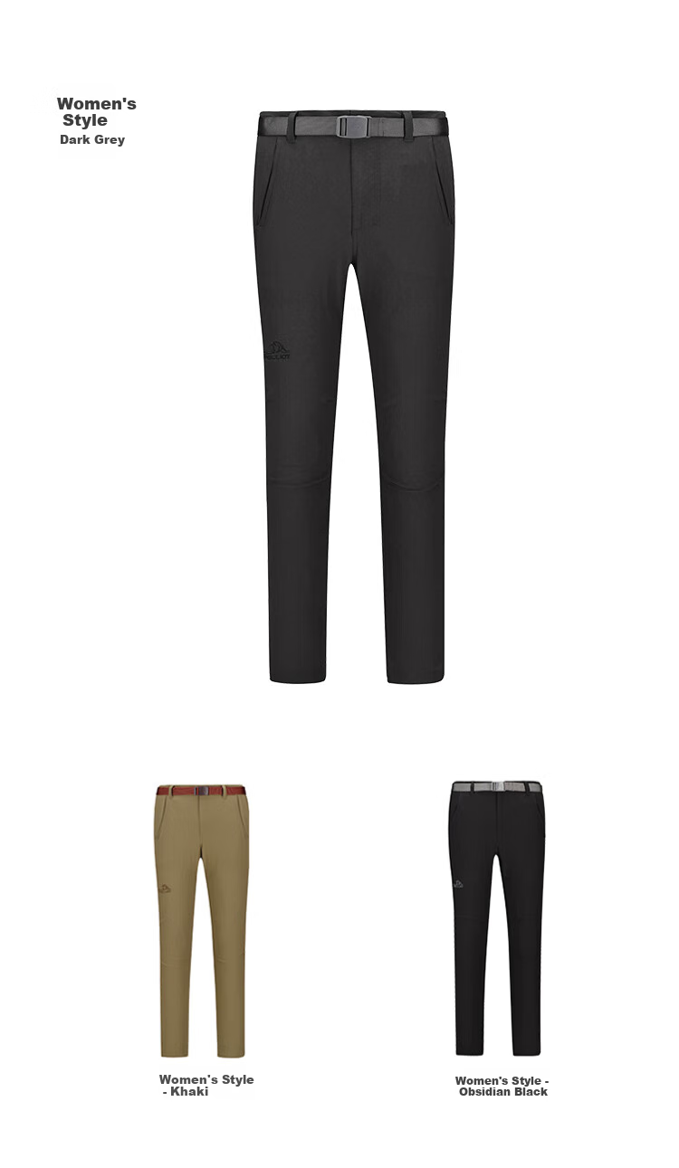 - **Women's:** Dark Gray, Khaki, Obsidian Black