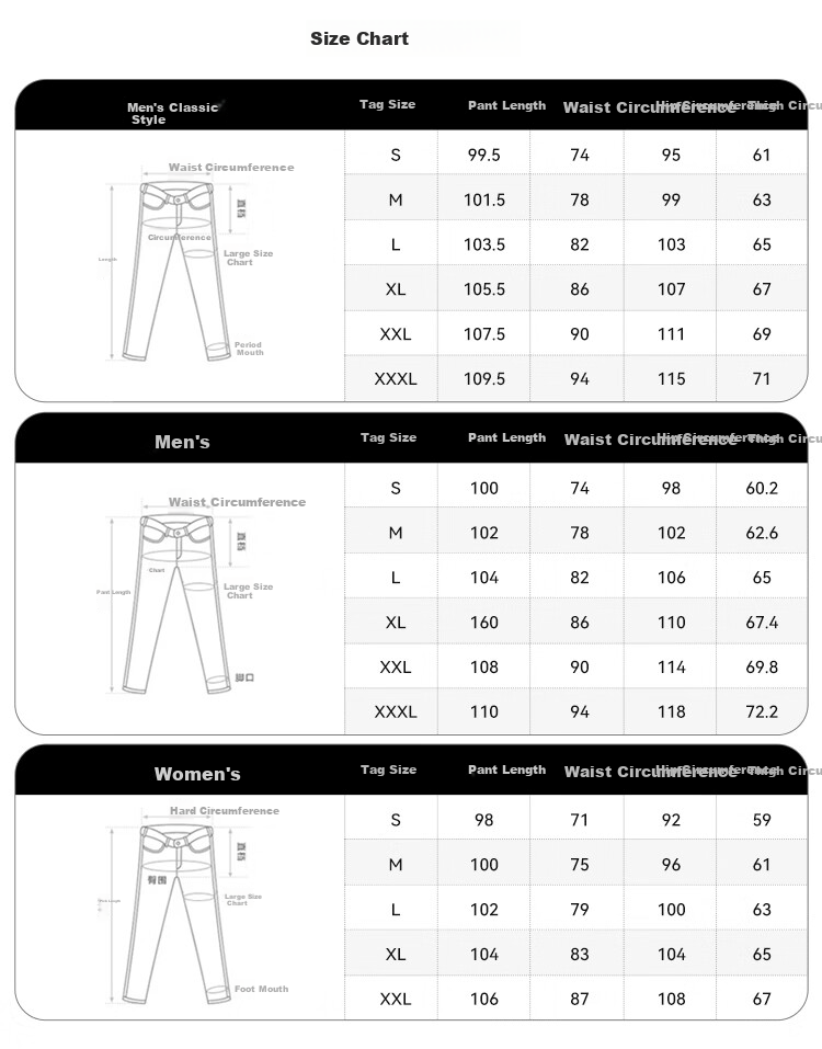 | Size | Tag Size | Length | Waist | Hip | Thigh |