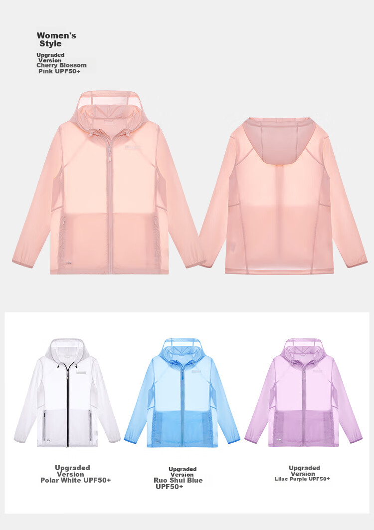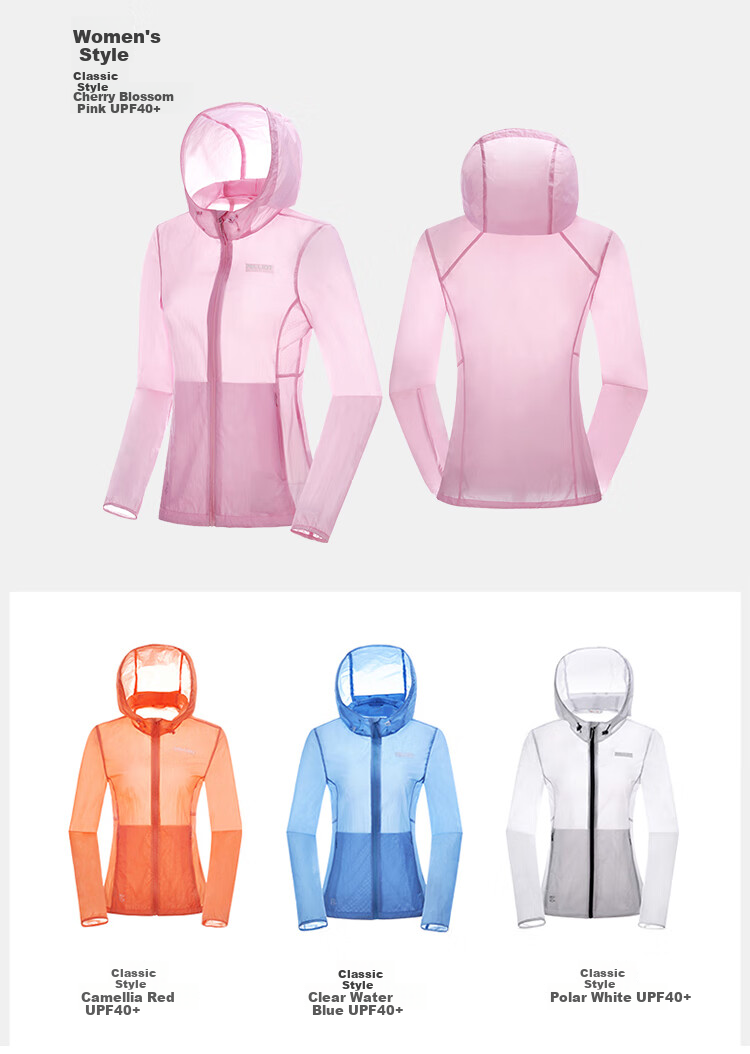 - Women's: Various colors with UPF ratings