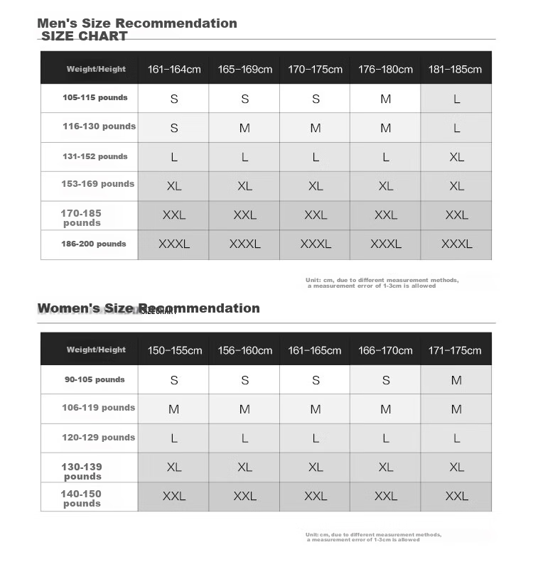 - XXL: 110cm (bust), 41cm (shoulder width), 69cm (length), 100cm (waist), 180cm (height)