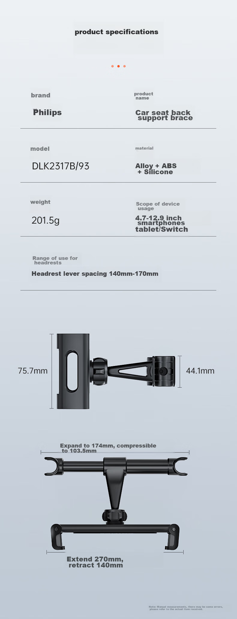 **Note:** Manual measurements may have slight errors, please refer to the actual product received.
