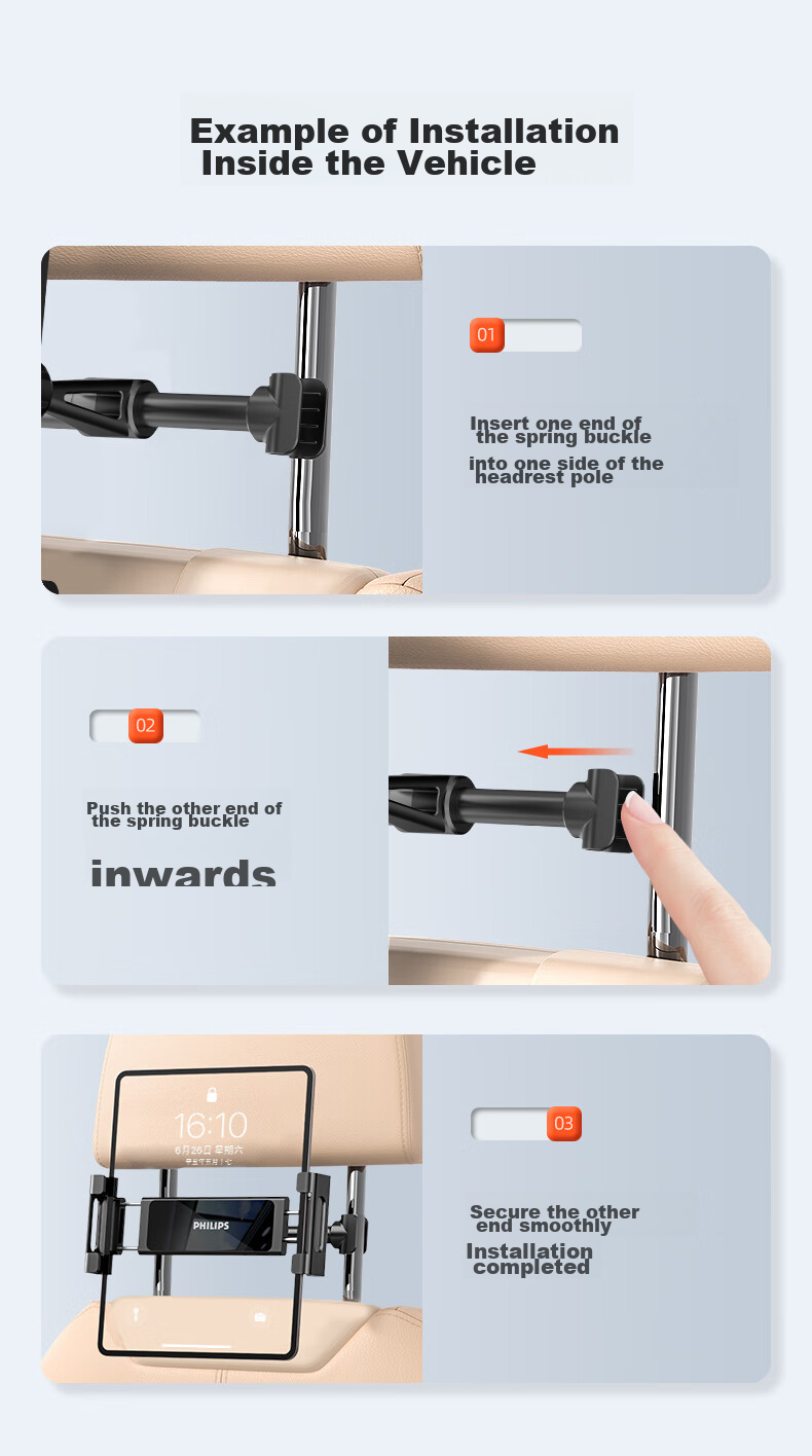 Easy installation on car headrest