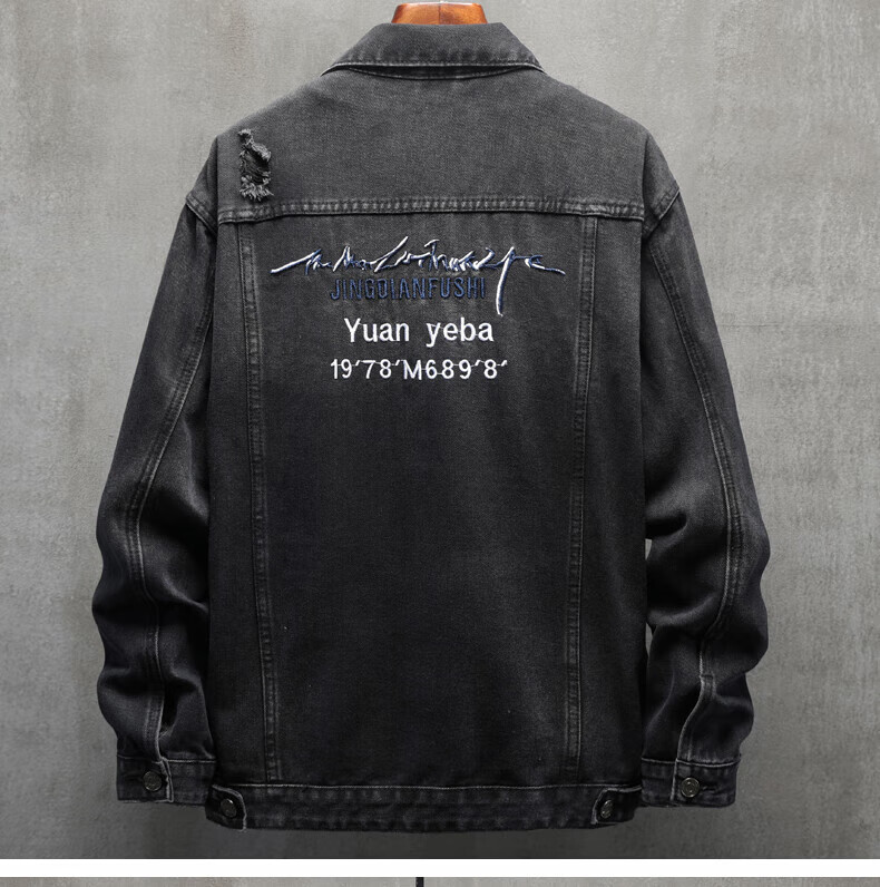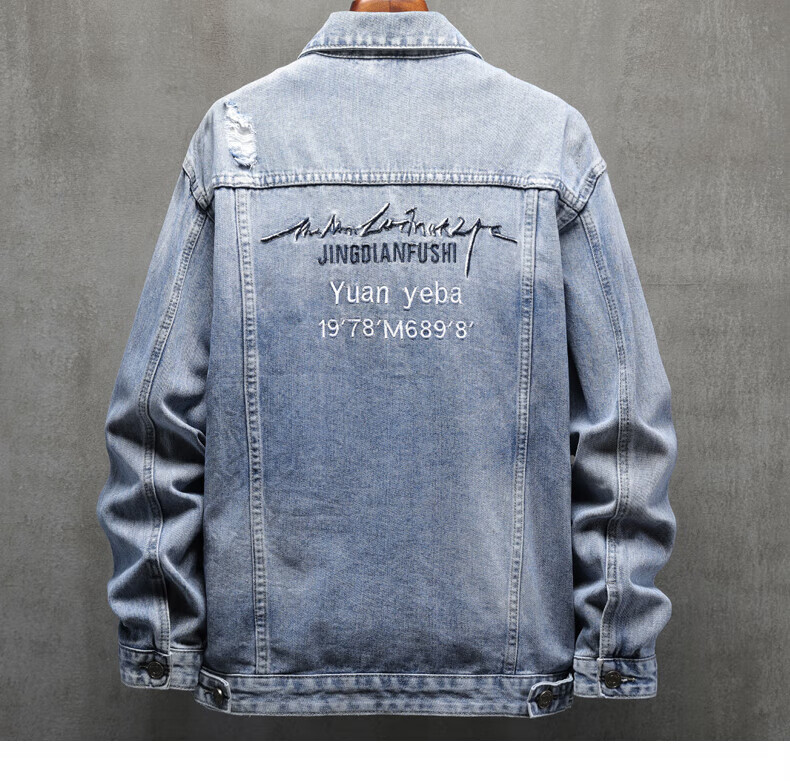 Pierre Cardin Men's Spring Comfortable Loose Trendy Printed Denim Jacket Men's Denim Jacket BFH6020 Blue 2XL