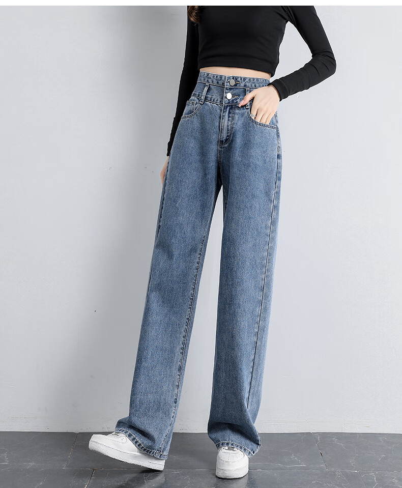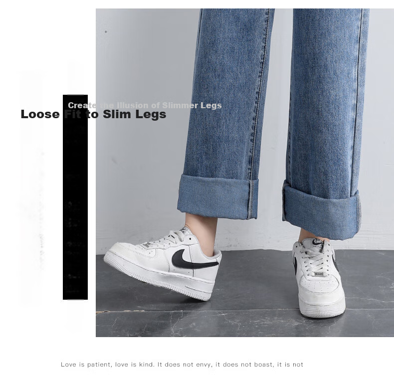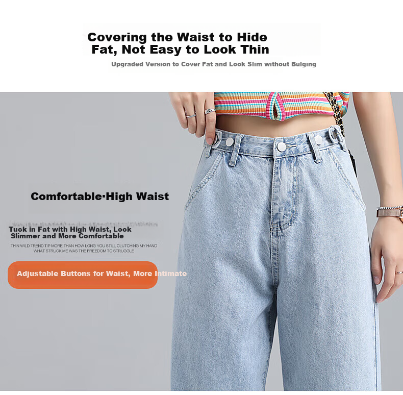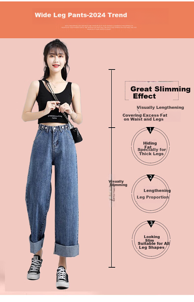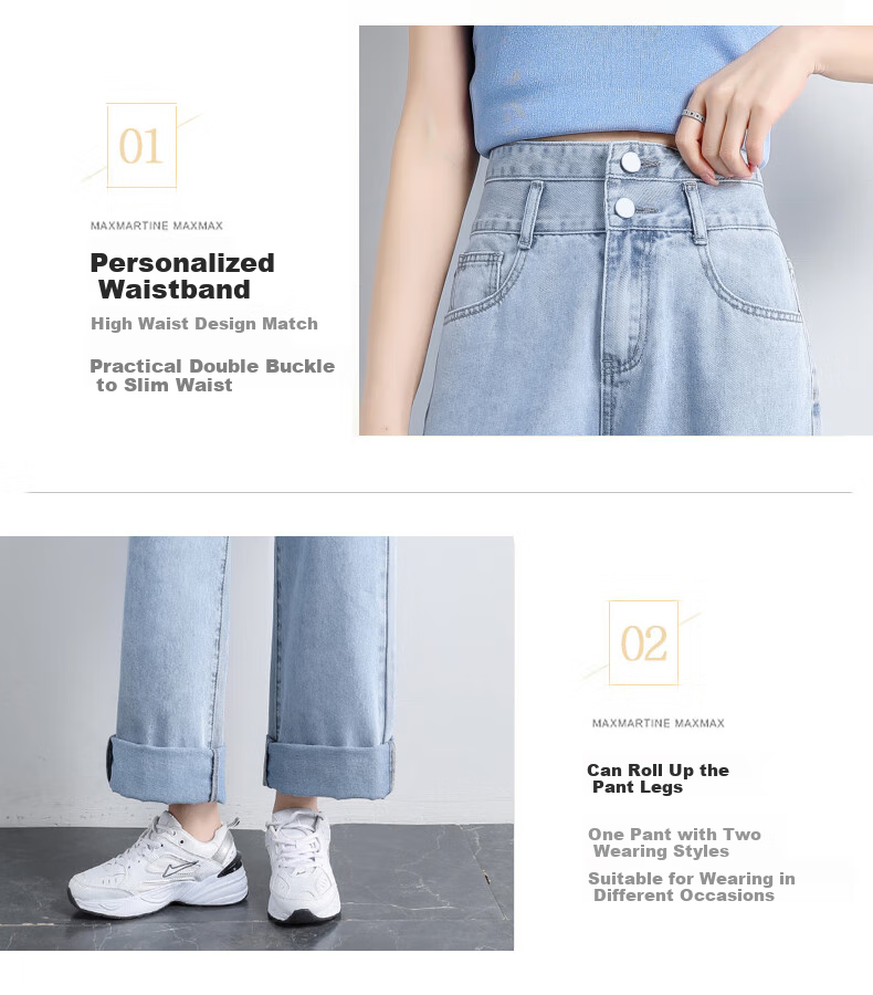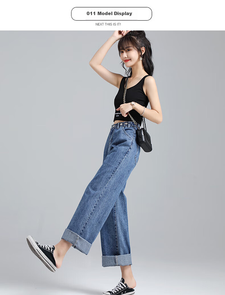 **Special Features:** High-waisted design with double buttons for slimming effect, roll-up cuffs for versatile styling, 3D cutting to enhance leg shape