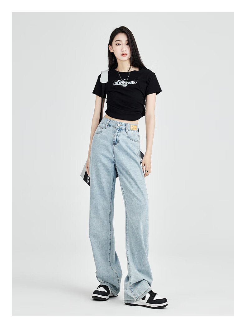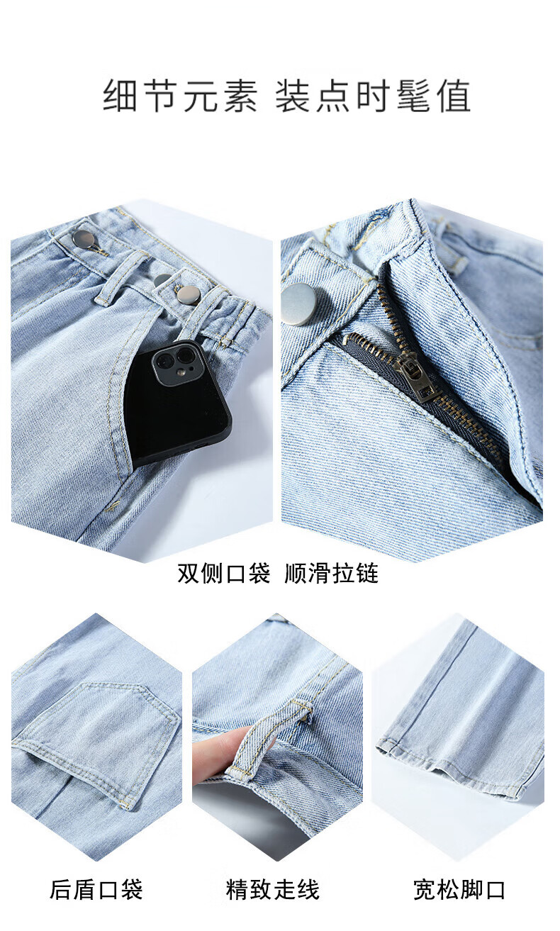 **Details:** Fashionable design with metal zipper and decorative buckles, practical back pockets, wide leg design for slimming effect